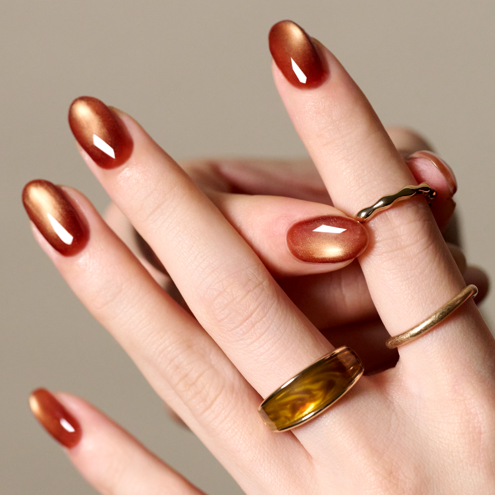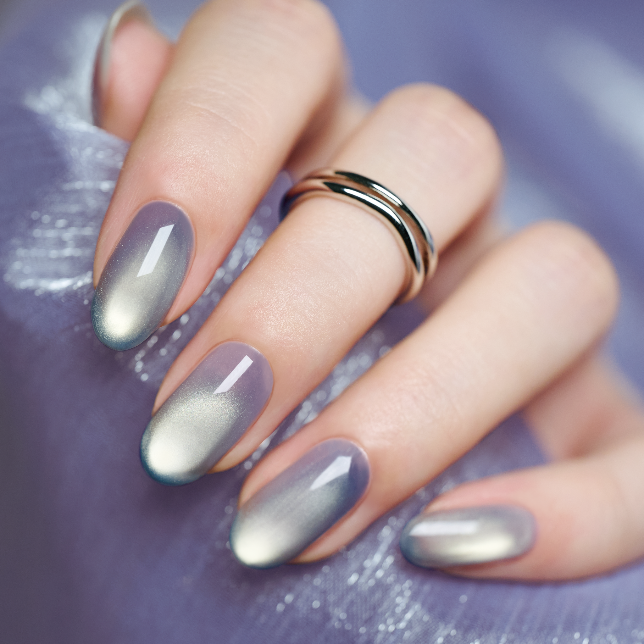 見る角度によって印象が変わる偏光ラメが特徴。